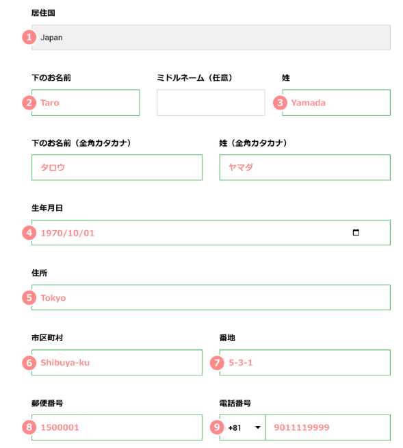 ミドルネームは持っていなければ空欄でOK。