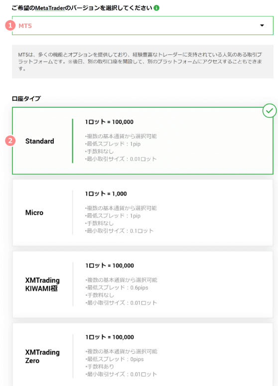 別の口座タイプは後から追加口座として開設すれば試せるので、ここではスタンダード口座のまま先に進みましょう。